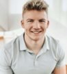 A row of self-help and business books stands upright on a table, adjacent to a laptop and a hand typing. The books have colorful covers, including titles like 'Atomic Habits' and 'The 4-Hour Work Week.' The setting appears dimly lit with a focused spotlight on the books, creating a cozy, studious ambiance.